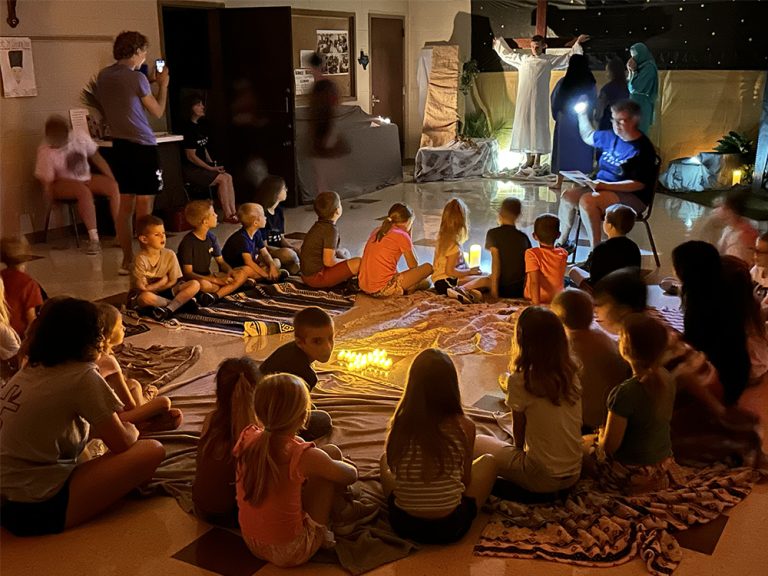 Each summer following the Sunday Celebration of the Feast of Corpus Christi, Sacred Heart Parish hosts Vacation Bible School for youth entering grades Kindergarten – 5th. At VBS, students learn about various aspects of the Catholic Faith through fun-filled activities including Bible studies, music, arts & crafts, games, and more.